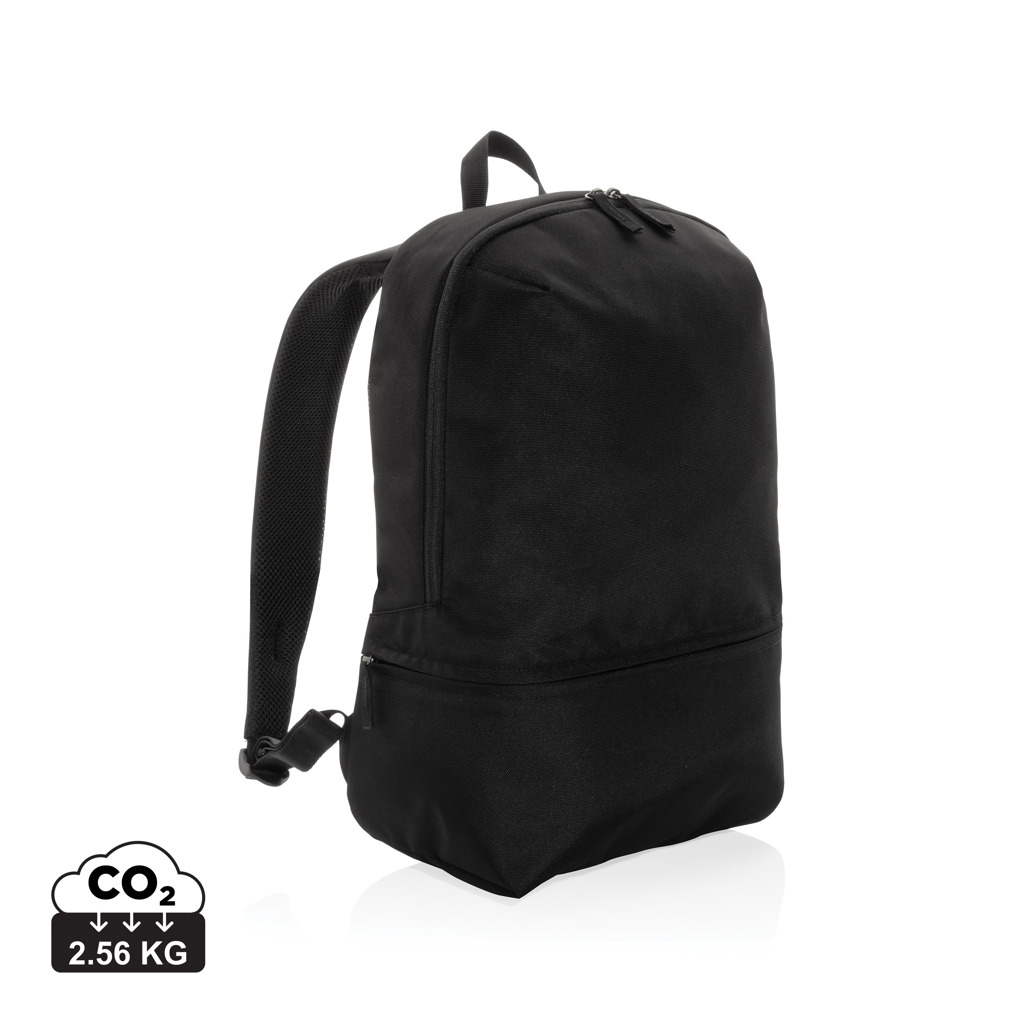 Look sharp in and out of the office with this sleek looking minimalistic design backpack. Enjoy traveling comfortably with the backpack that’s equipped with padded shoulder straps and back panel. The main compartment features a 15.6 inch laptop compartment and two open mesh pockets. On the top you can find a PU handle. The exterior material and lining is made with recycled polyester. With AWARE™ tracer that validates the genuine use of recycled materials. Each bag has reused 9.01 0.5L PET bottles. 2% of proceeds of each Impact product sold will be donated to Water.org. PVC free.