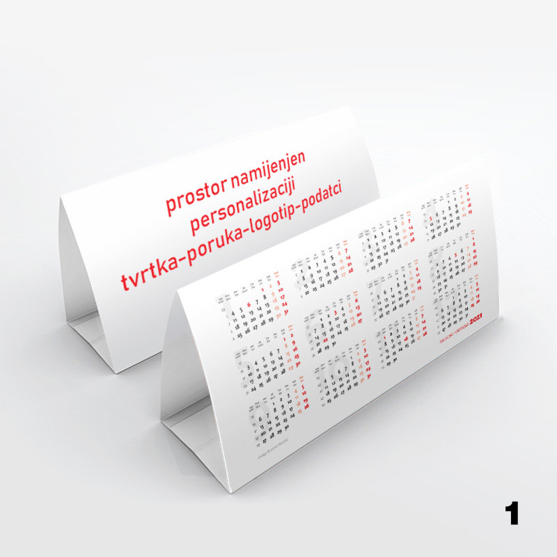 Mogućnost odabira boje naglaska (crvena u slikama) kako bi kalendarij komplementirao Vaš dizajn reklamnog prostora.