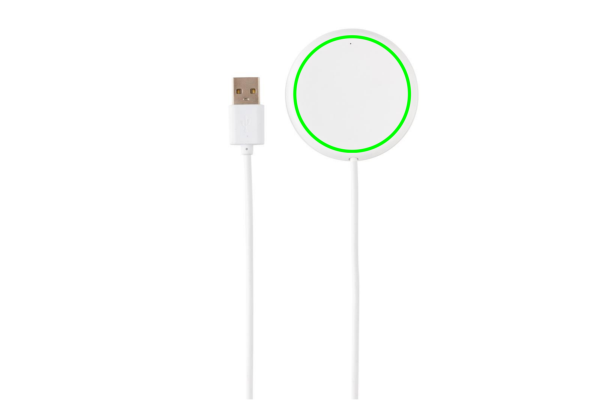 Snap on this magnetic wireless charger to the back of your iPhone 12 to charge your device. The magnets are perfectly aligned to always ensure the right charging position on your phone. The ABS material wireless charger is compatible with all QI devices (Iphone 8 and up and Android devices) so on other phones it can be used as a regular wireless charger. Including 100 cm TPE material micro USB cable. Item and accessories PVC free. Input DC 5V/1.5A; Output 5V/1.0A (5W) 11 pcs high quality N52H heat resistant magnets integrated.
