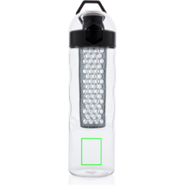 Add some healthy fruit flavours to your water. This design bottle with honeycomb details offers convenient single-handed drinking. Push the button and the lid flips open. There’s a special locking mechanism to keep users from accidentally pressing the button. Including carrying handle. This infuser bottle is made of a durable and innovative tritan material . Odourless and 100% BPA-free. Content 700ml. Registered design®