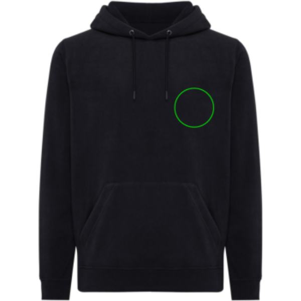 Unisex medium fit microfleece hoodie made from 100% post-consumer recycled polyester in 240 G/M². This fleece hoodie envelops you in softness and warmness. It has a convenient kangaroo pocket, double-layered hood with a tonal drawstring and metal eyelets. The Inside half-moon in woven fabric offers a perfect personalized inside neck print. Bottom hem and sleeve cuffs are made from self-fabric for extra softness. The use of genuine recycled & organic fabric materials and environmental impact claims are guaranteed, by using the AWARE™ disruptive physical tracer and blockchain technology. By scanning the QR code, you will gain access to a dedicated digital passport of the product. 2% of proceeds of each sold product will be donated to Water.org. This product is OEKO-TEX® STANDARD 100 certified.