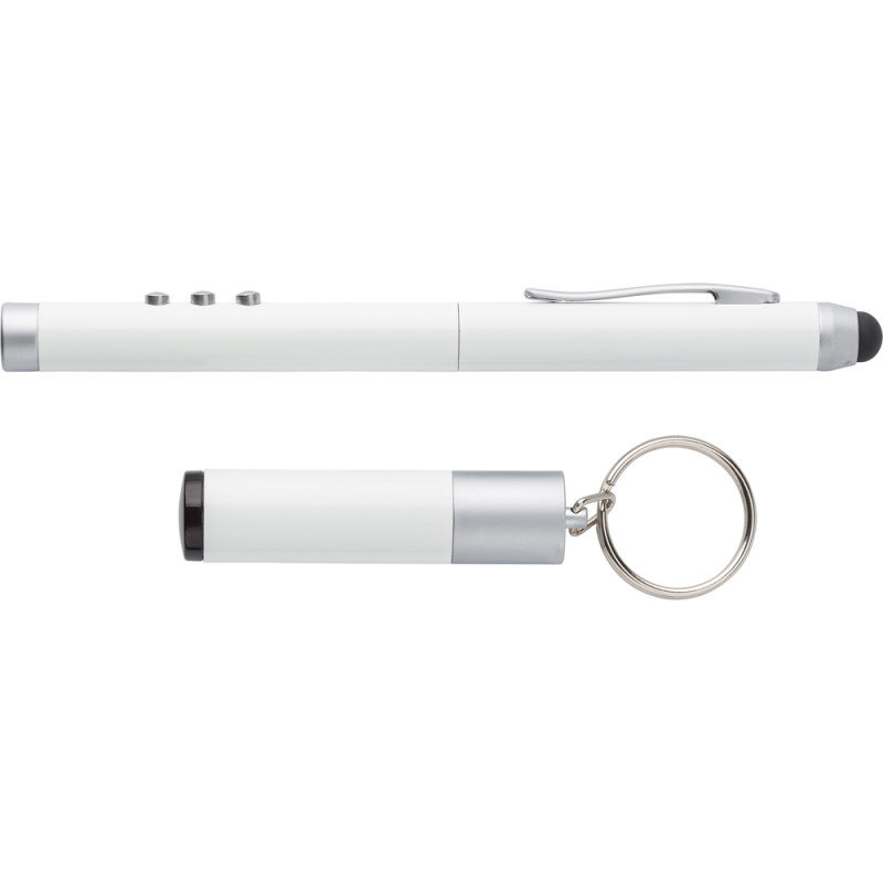 Plastic laser pen (Class 1) and presenter to navigate through your presentation. With rounded rubber tip, suitable for all capacitive touch screens, black ink. With receiver, presented in a black gift box. Batteries included