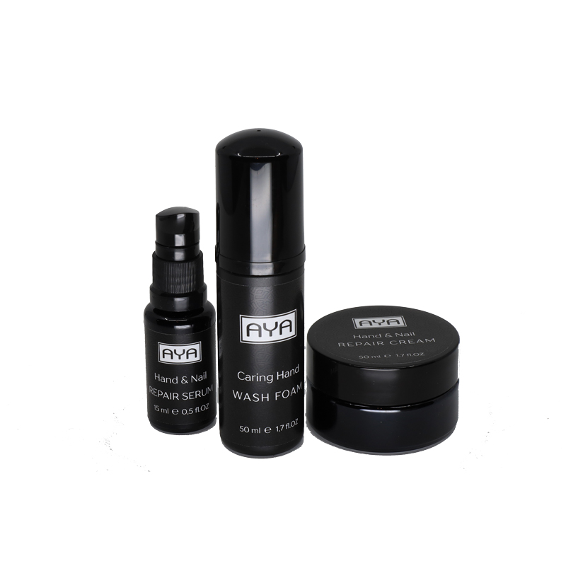 Za redovnu prirodnu njegu ruku i noktiju. Svakodnevni rad rukama utječe na našu kožu i ako ih ne njegujemo, one će prve pokazati znakove starenja kože. Zbog toga je osvježenje i pravilno njegovanje ruku i noktiju nužno. Kozmetički set za njegu ruku i noktiju sadrži: