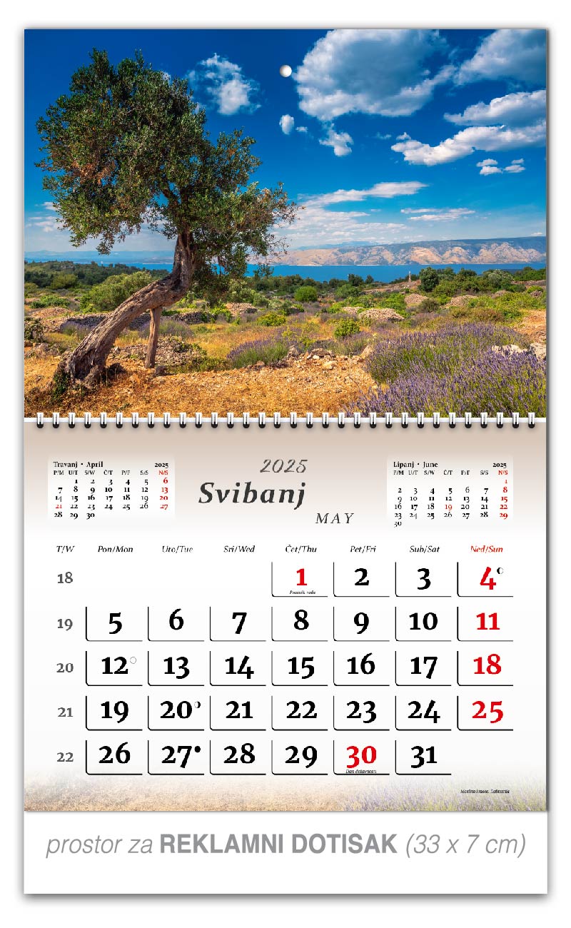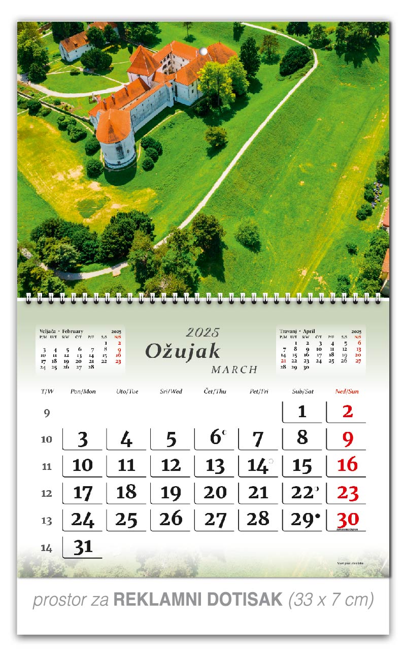Dotisak Vašeg logotipa i/ili vaših podataka na pasicu preklopnog kalendara nije uračunat u cijenu, ali smo Vam u mogućnosti ponuditi isto. Za cijene molimo pogledajte cjenik niže.