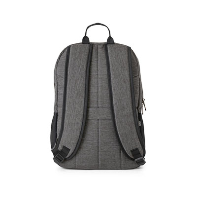 300D PET (100% rPET) i 210D PET (100% rPET) ruksak za prijenosno računalo. Podstavljeni glavni pretinac s glavnom pregradom za prijenosno računalo do 15,6″ i tablet do 10,1″. Ruksak s 2 prednja džepa s patentnim zatvaračem i 2 bočna mrežasta džepa. Podesive podstavljene naramenice za leđa i ramena. Leđa uključuju remen za kolica ako se ukaže potreba. Idealan dizajn koji osigurava izvrsnu pohranu za vaš posao ili putovanja u slobodno vrijeme. Kapacitet do 18 litara. 300 x 450 x 140 mm