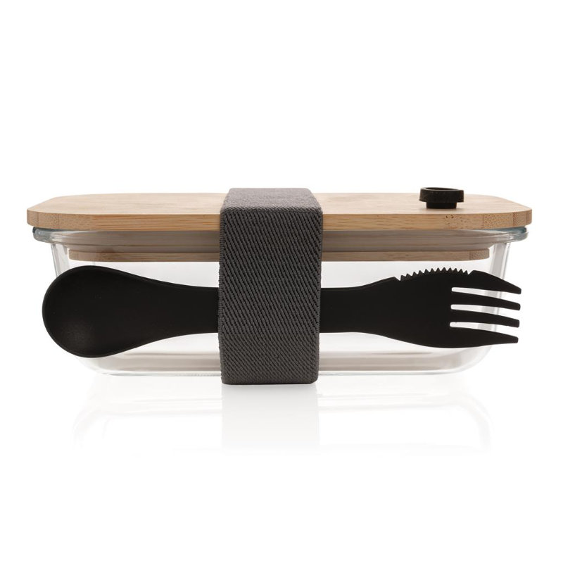 Izrađen od borosilikatnog staklaOtporan na toplinski udarLako se nosi kamo god idetePoklopac od bambusaUključujući vilicu