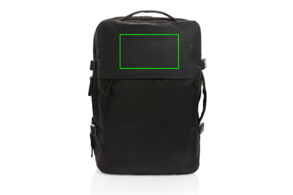 The Swiss Peak AWARE™ RPET 15.6′ expandable weekend backpack fits your 15.6 inch laptop in a compartment designed for quick and easy airport screening. Its expandable main compartment increases capacity by more than 35% for longer trips. Side compression straps secure and stabilise contents for ease of carrying. The smart organiser pockets hold chargers cables and other essentials. With luggage strap. With AWARE™ tracer that validates the genuine use of recycled materials. Each bag has reused 38.4 0.5L PET bottles. 2% of proceeds of each Impact product sold will be donated to Water.org. PVC free.