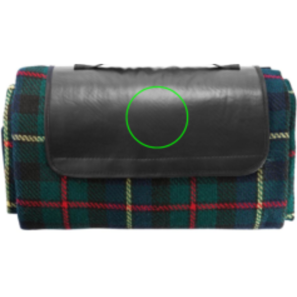 Traditional styled blanket, size 130x145cm, top woven acrylic 120gsm coloured square pattern, back of blanket is waterproof PVC 110gsm.