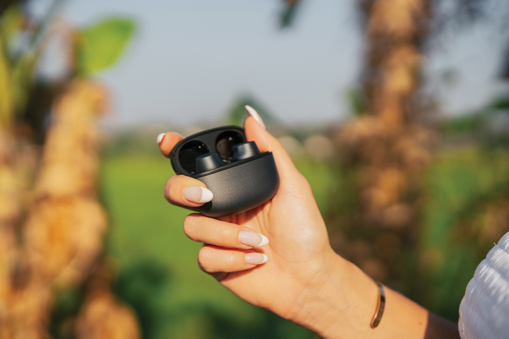 Wireless earbuds with clear sound and strong bass. Made with RCS (Recycled Claim Standard) certified recycled aluminium and ABS. Total recycled content: 64% based on total item weight. RCS certification ensures a completely certified supply chain of the recycled materials. Aluminium does not lose its characteristics in the recycling process and can be recycled endlessly. Including recycled type C charging cable made from RCS certified recycled aluminium, TPE and PET. The earbuds have a 40mah battery that allows a playtime up to 5 hours and can be fully re-charged in 1.5 hours via the 300 mah charging case. With BT 5.3 for smooth connection up to 10 metres. Packed in FSC® mix packaging. Item and accessories 100% PVC free.