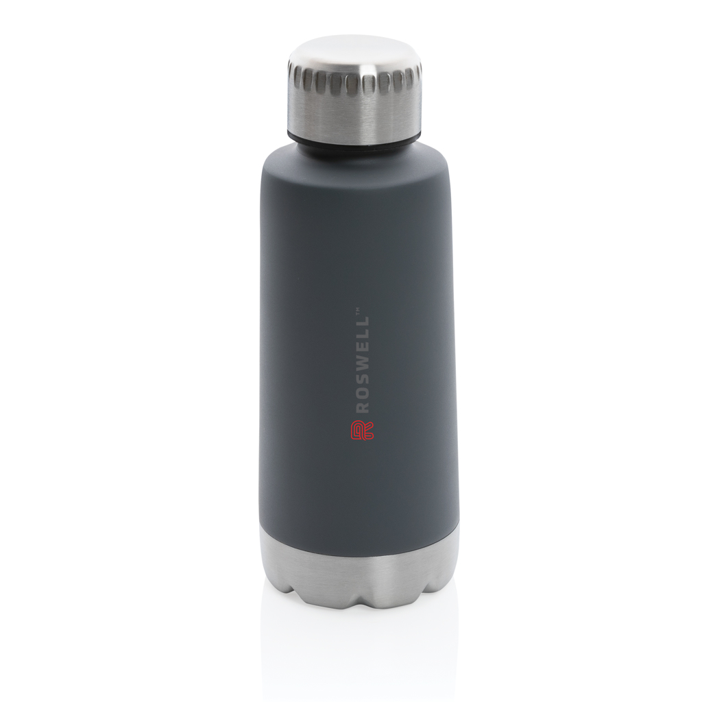 The perfect size BPA-free lightweight stainless steel bottle! This Trend leakproof vacuum bottle is the ultimate solution for your healthy and comfortable hydration on the go. An unique shape with on-trend colours. Keeps your beverages hot for up to 5 hours and cold for up to 15 hours. Leakproof thanks to the screw lid, so pop it in your bag and go! Capacity 350ml.