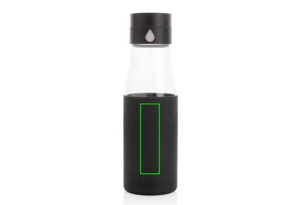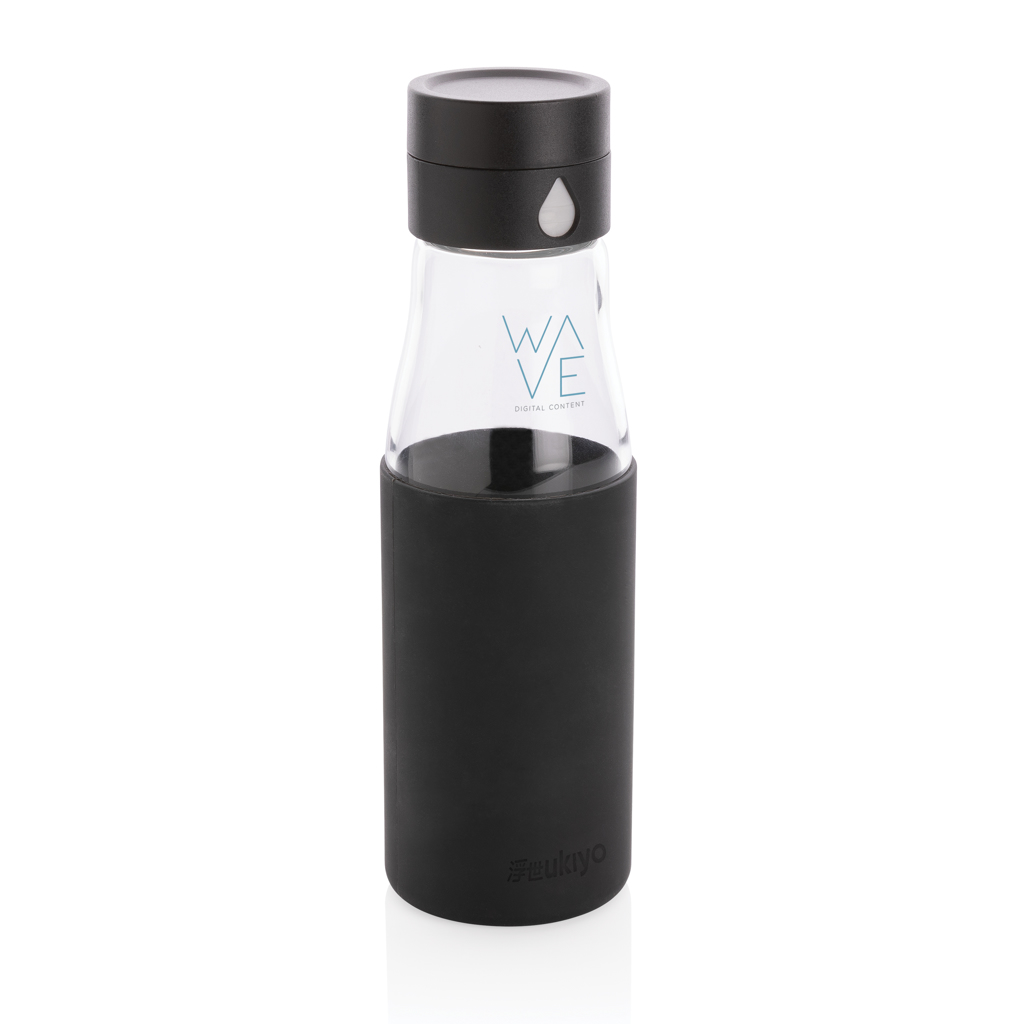Track your daily hydration goals with this cleverly designed Ukiyo borosilicate glass 600ml water bottle. The lid displays a bigger water drop each time you refill and twist the collar so you can easily keep count of the number of bottles you drink. The body is dishwasher safe. Leakproof. Registered design®