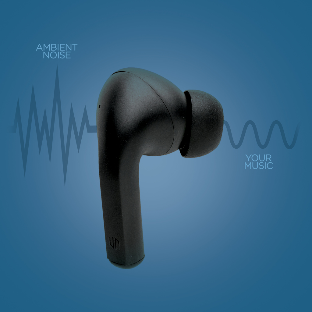 Unblock unwanted external noise with Active Noise Cancelling (ANC). When you want to hear the sound around you simply switch to transparency mode with one single tap. The comfortable earbuds have up to 5 hours of listening time and the charging case allows up to 20 hours of playback. The earbuds are engineered to deliver a powerful yet balanced sound. The result is a deep sound that brings the emotion of the music directly into your ear. With mic for clear calling and touch function to answer call or pause the earbuds. The IPX 4 rating makes the earbuds weather and sweat proof so no worries to take them outside. ANC level: up to 25 DB. Urban Vitamin items are made without PVC and packed in plastic reduced packaging.