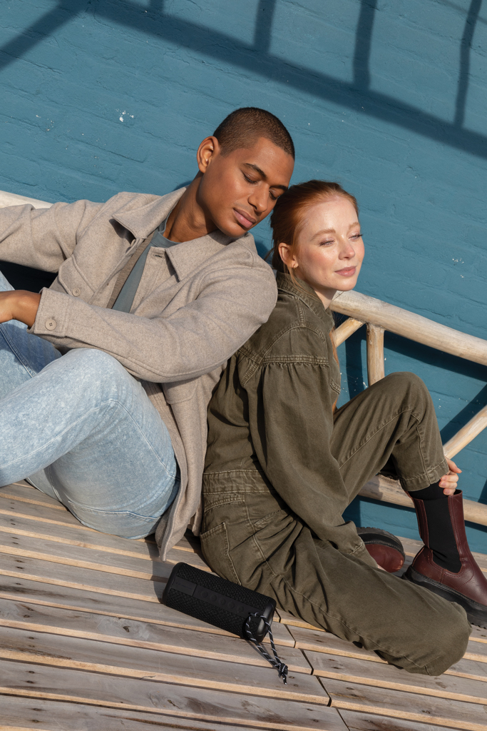 Bring your speaker wherever you go. Hanging out at the beach? Perfect! Party at the pool? Covered! Sudden rain? No worries! Your speaker is IPX7 waterproof up to 1 metre deep and max 30 minutes! After a sandy day at the beach simply rinse it off under the shower. The 10W speaker has a massive bass supported by two subwoofers on both ends of the speaker. The powerful sound is enough to keep a good sized party going until sun rise. The durable fabric and strong housing will make sure the speaker can even handle a little bump. Enjoy up to 15 hours of play time! If you receive a call, just answer it with the integrated mic in clear quality. Urban Vitamin items are made without PVC and packed in plastic reduced packaging