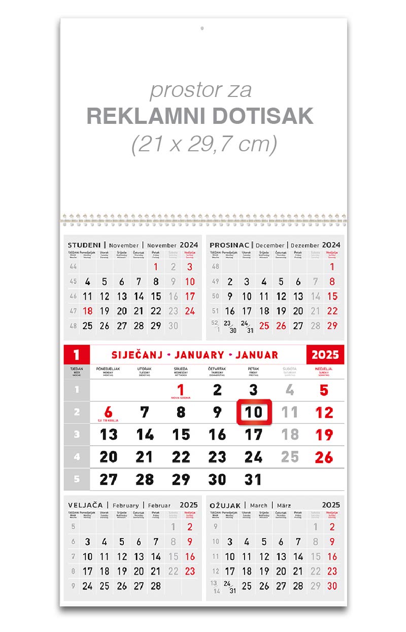 DORADA: spiralni uvez zaglavlja i kalendarija, rupica za ovjes