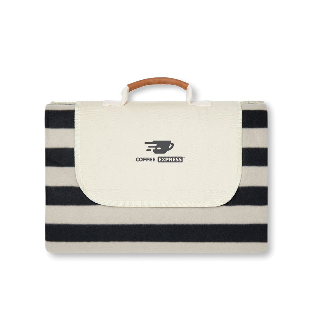 Picnic blanket in soft fleece with cotton canvas and details in PU. Clever construction makes it easy to fold up and take with you. The fleece is crafted GRS certified recycled PET. The back is made in PEVA, which repels water. Certified by GRS (Global Recycled Standard), GRS certification guarantees that the entire supply chain of the recycled materials is certified. The total recycled content is based on the overall product weight. This product contains 54% GRS recycled fleece.